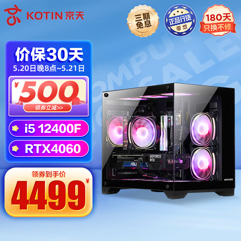 京天Strike 766 i5-12400F/RTX4060 8G/16G DDR4/1TB固态电脑台式机电竞游戏直播台式机组装电脑主机价格:4999.00元!