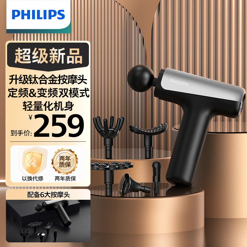 飞利浦(PHILIPS)筋膜枪 钛合金按摩头 肌肉按摩器 专业级健身运动筋膜枪深层放松腰腿颈肩按摩颈膜枪3205G价格:459.00元!