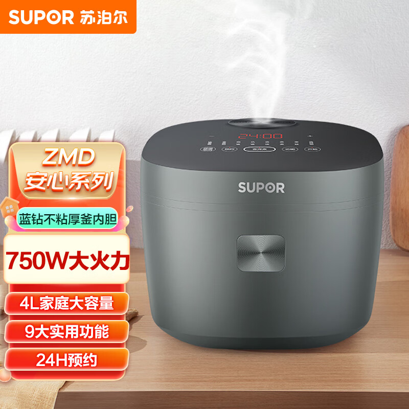 苏泊尔(SUPOR)ZMD安心系列 蓝钻不粘厚釜 顶置触控面板 内盖一键可拆卸 9大功能 4L电饭煲SF40FC5071价格:399.00元!