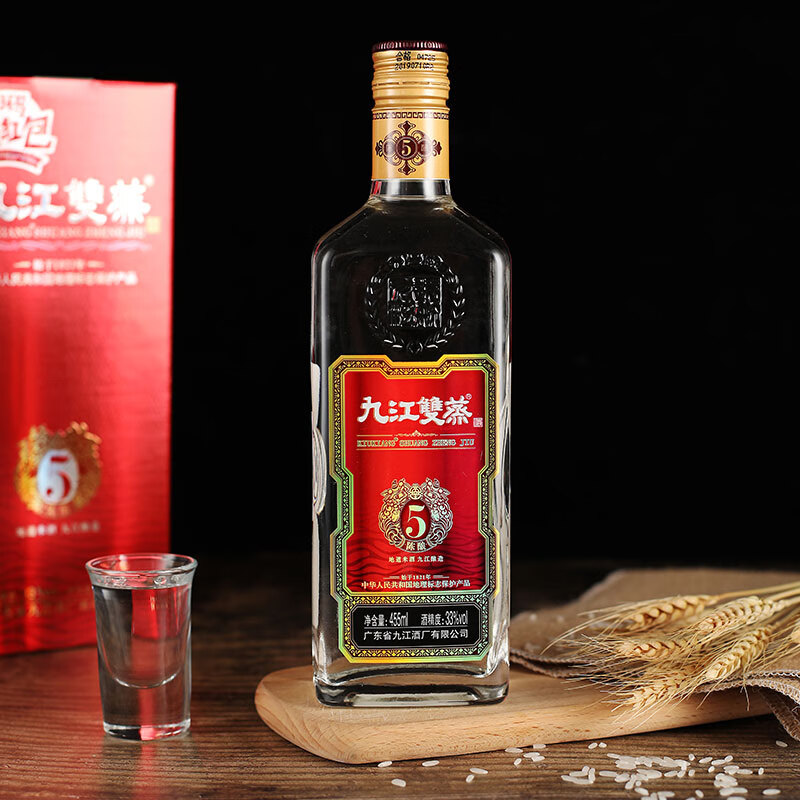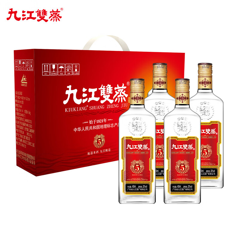 九江双蒸 豉香型白酒 33度双蒸五年陈系列455mlx4瓶 中秋送礼红色经典礼盒价格:269.00元!