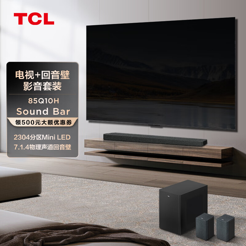 TCL影音套装-85英寸 旗舰Mini LED电视 Q10H+旗舰级家庭声学系统 回音壁 X937U价格:17998.00元!