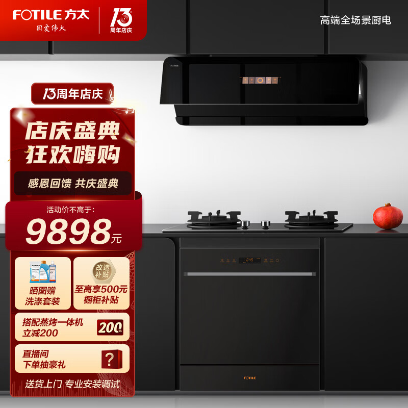 方太烟灶洗三件套 24巡航风量变频油烟机 5.0kW猛火灶 12套嵌入式洗碗机F1A+THF1A+02-NJ01价格:9898.00元!