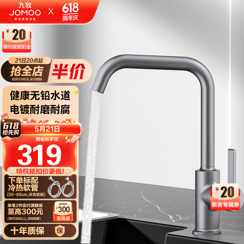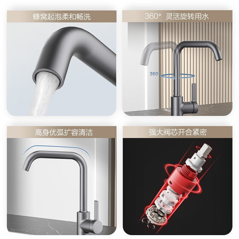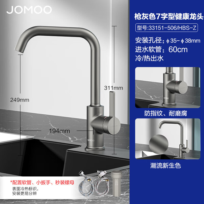 九牧(JOMOO) 厨房水龙头7字型枪灰龙头360度可旋转高挑水龙头33151-506/HBS-Z价格:369.00元!