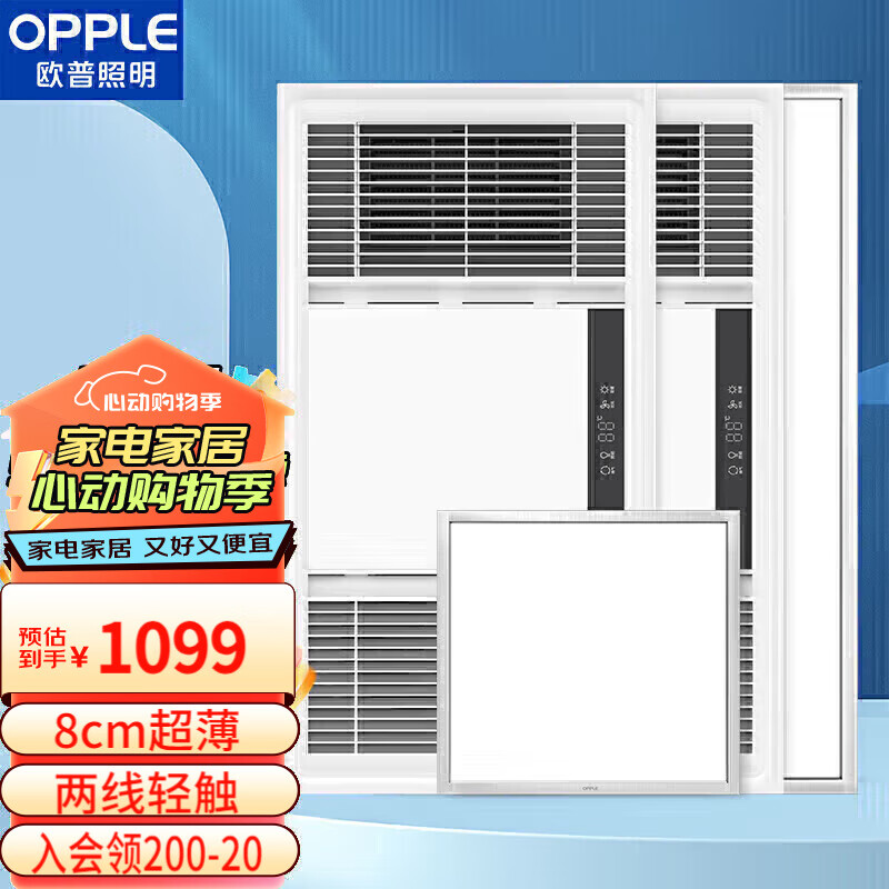 欧普(OPPLE)大功率风暖浴霸暖风机轻触双核强暖集成吊顶浴霸F135-E套餐价格:1099.00元!