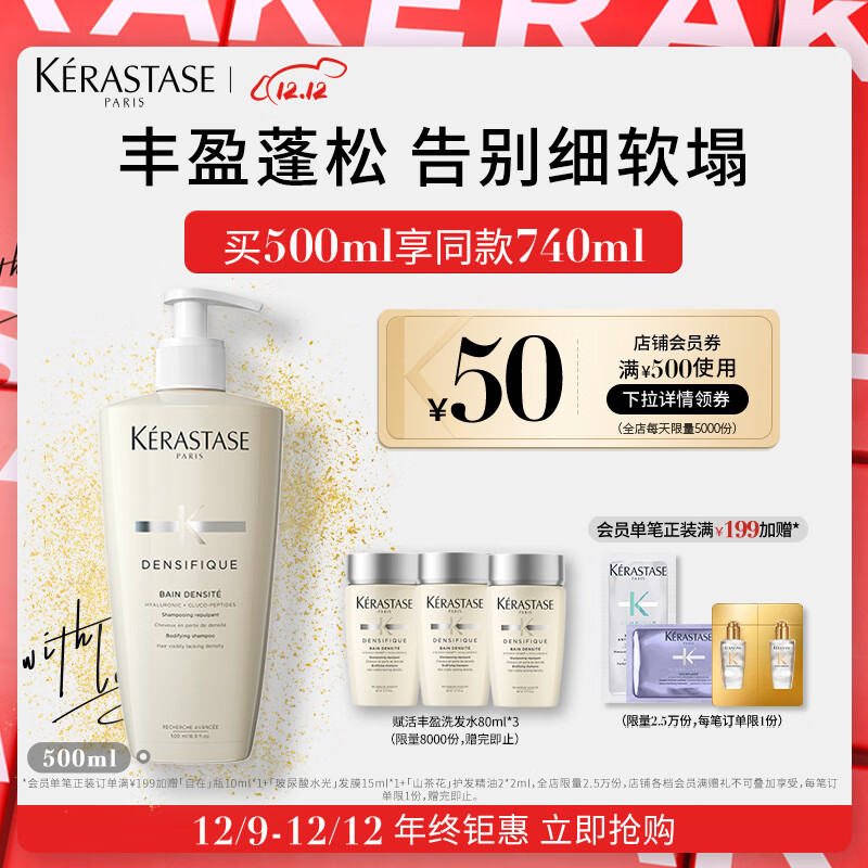 卡诗白金赋活洗发水500ml氨基酸无硅油秀发丰盈蓬松改善细软扁塌价格:450.00元!