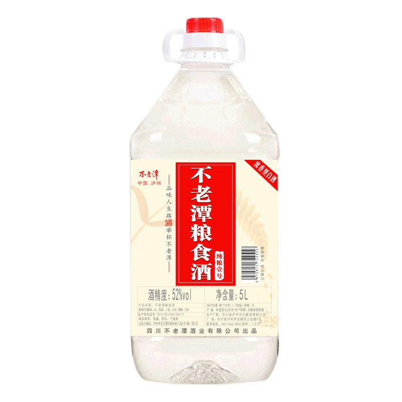不老潭粮食酒 桶装高度浓香型泸州糯红高粱散装白酒纯粮壹号 52度 5L价格:99.00元!