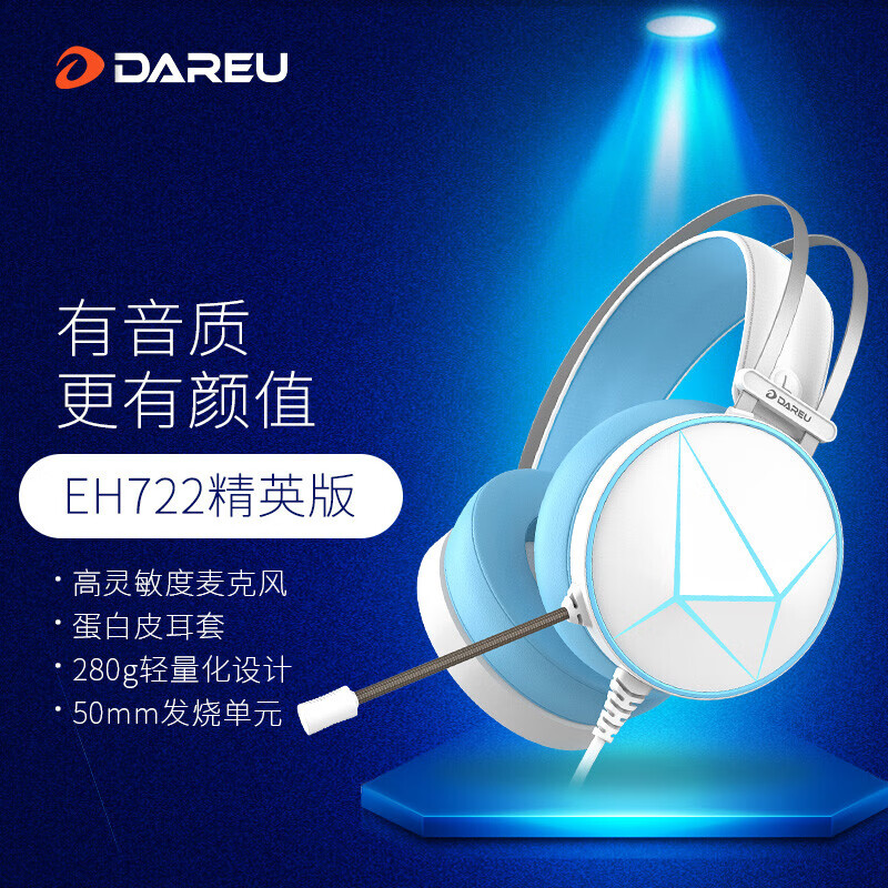 达尔优(dareu) EH722精英版游戏耳机耳机头戴式电脑手机耳机带麦电竞耳机吃鸡耳机3.5mm接口 白蓝色价格:149.00元!