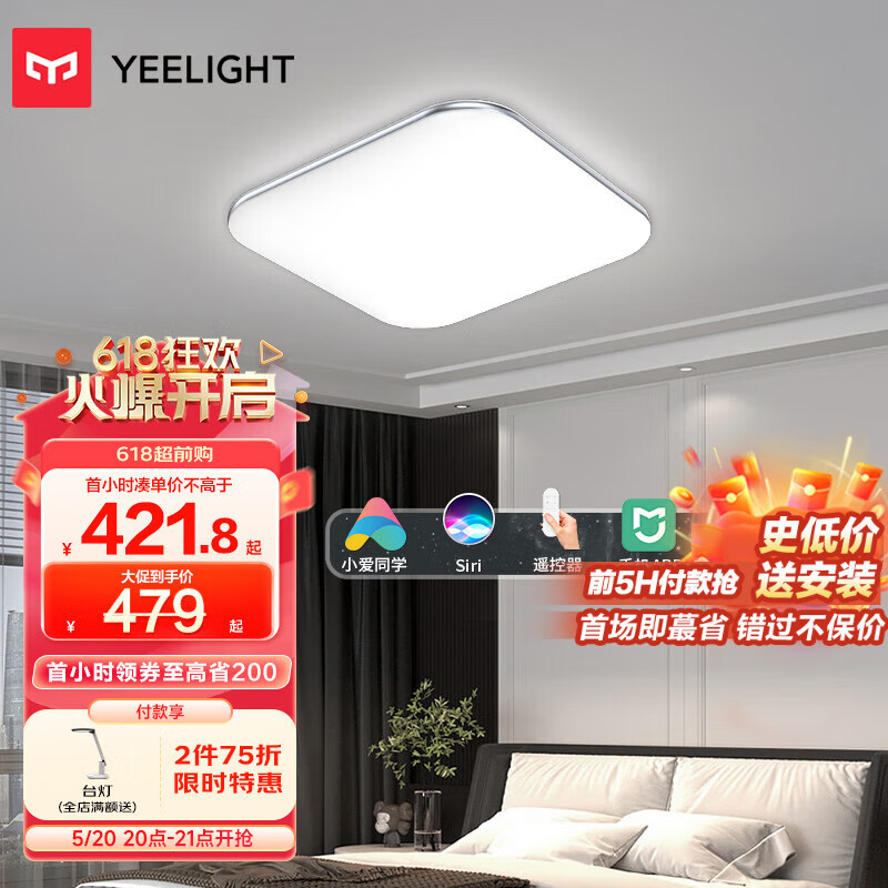 Yeelight易来灵犀led灯吸顶灯 支持米家智能灯具 客厅卧室灯护眼灯500方灯价格:629.00元!