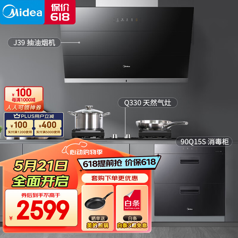 美的(Midea)【烟灶消毒柜套购】家用侧吸21立方吸油烟机5.0kW火力烟灶J39+Q330天然气搭100升消毒柜90Q15S价格:2999.00元!