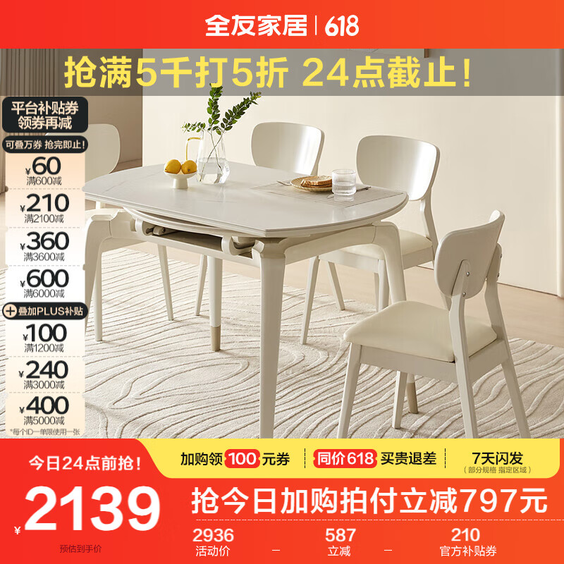 全友家居 餐桌现代简约岩板餐桌可圆可方伸缩功能吃饭桌子家具DW1121B价格:2936.25元!