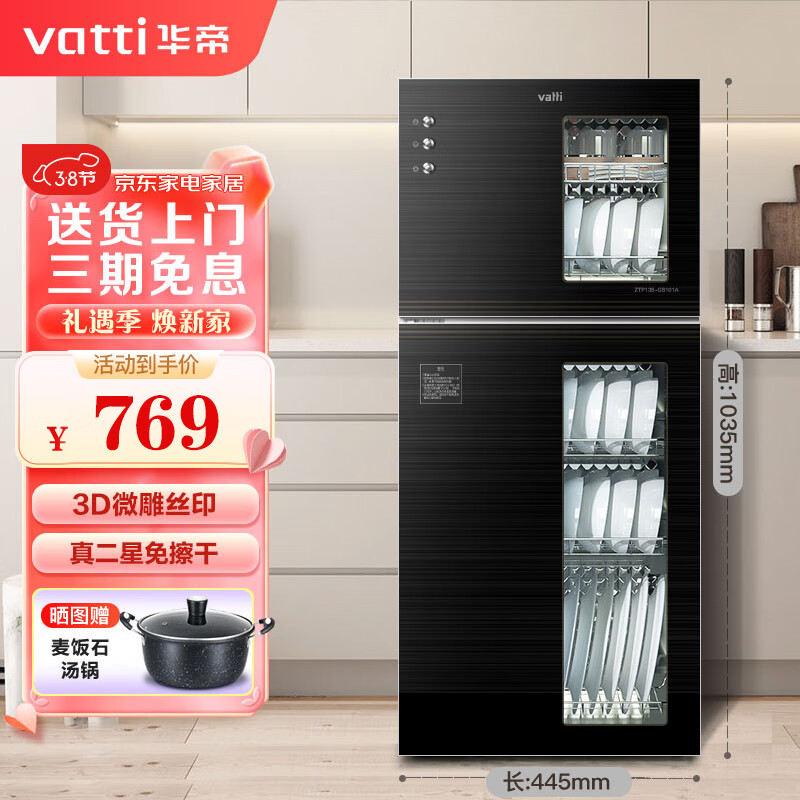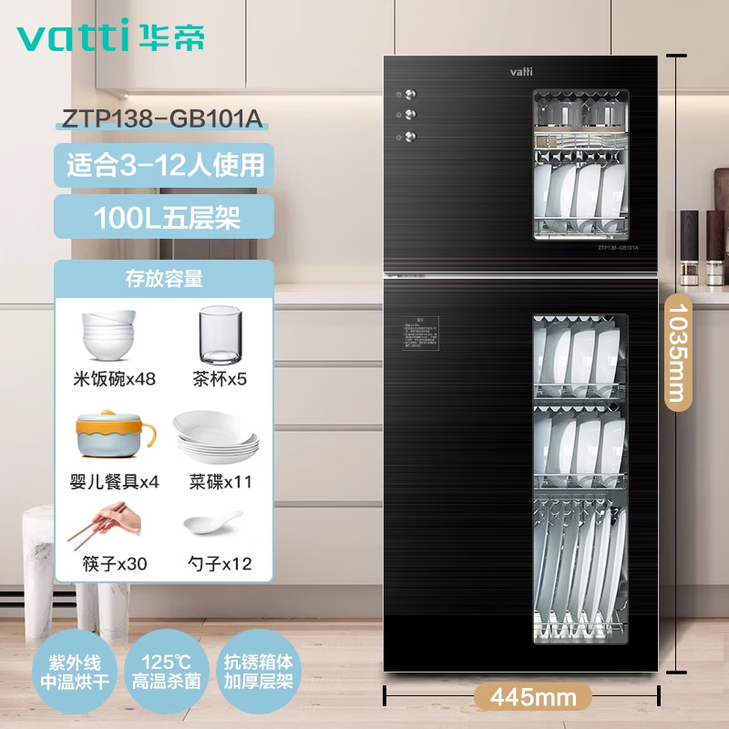 华帝(VATTI)消毒柜立式家用二紫外线高温烘干婴儿奶瓶厨房餐具碗筷消毒碗柜 ZTP138-GB101A价格:869.00元!