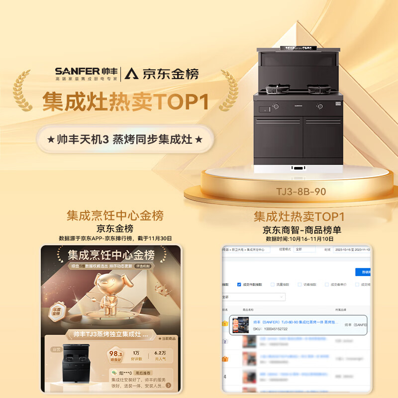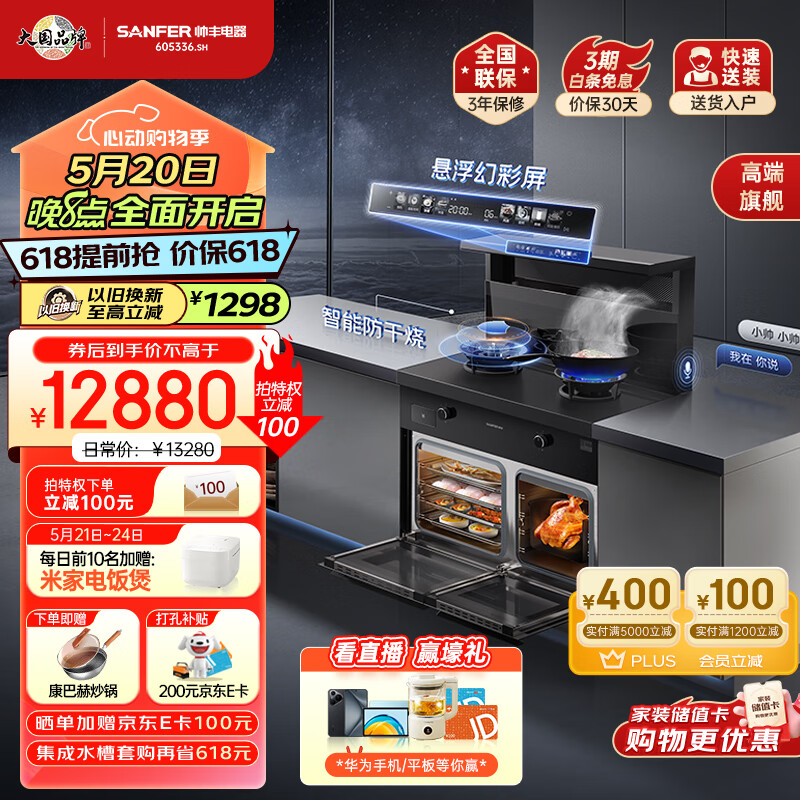 帅丰集成灶一体式 蒸烤箱一体机 家用蒸烤独立变频集成灶TJ3-8B 智能语音5.0kW燃气灶 天然气价格:12980.00元!