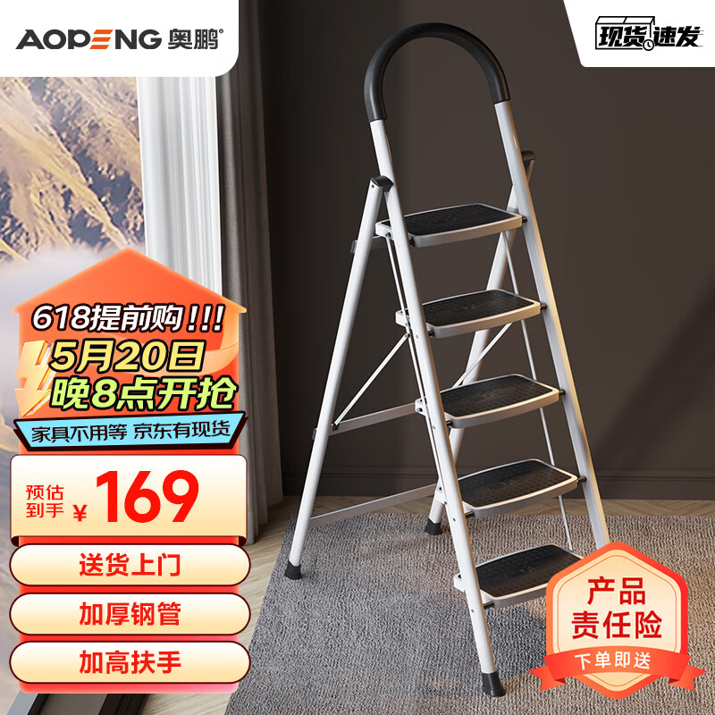 奥鹏梯子家用折叠五步梯室内登高楼梯单侧人字梯扶梯爬梯工程梯价格:179.00元!