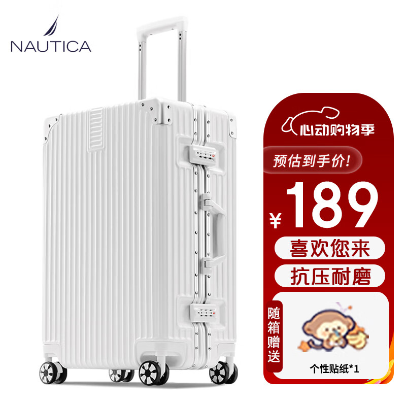 NAUTICA行李箱男女拉杆箱结实耐磨万向轮铝框旅行箱20英寸登机密码皮箱价格:189.00元!