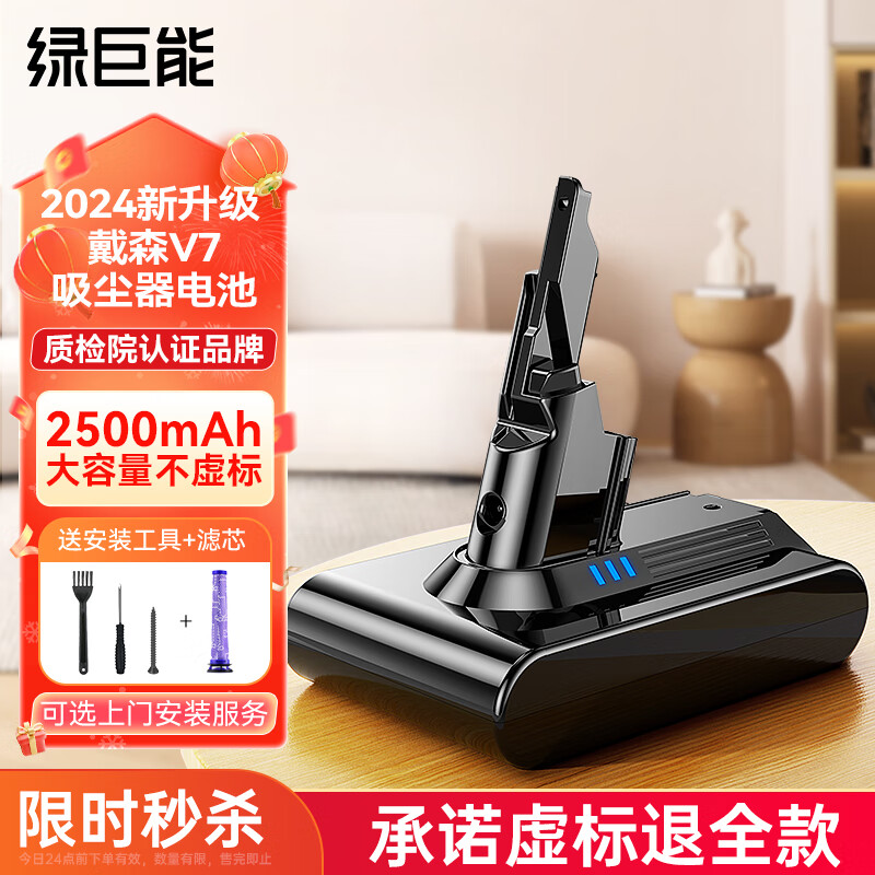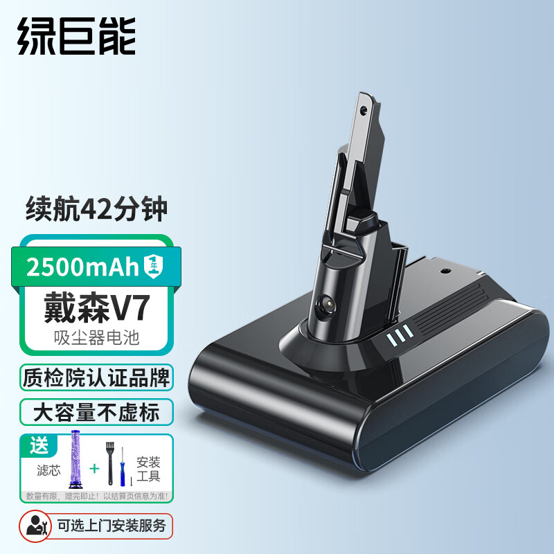 绿巨能(llano)适用戴森Dyson电池V7吸尘器充电锂电池SV11 V7 Animal/Trigger/Motorhead Pro/等 2500mAh价格:219.00元!