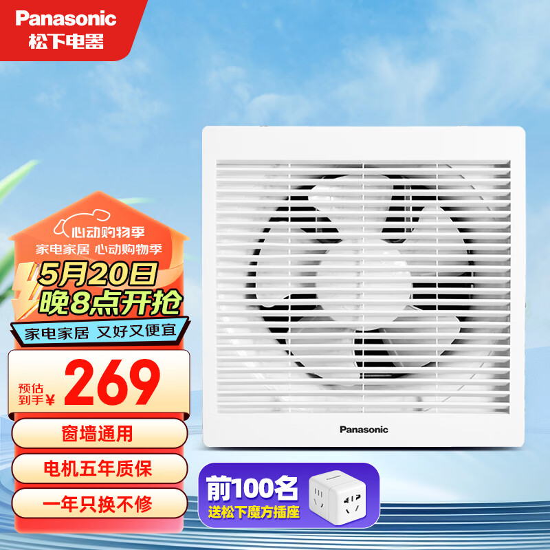 松下(Panasonic)换气扇窗墙式排气扇排风扇卫生间厨房抽风扇浴室排风机 10寸FV-25VWL2【方孔300*300】价格:299.00元!