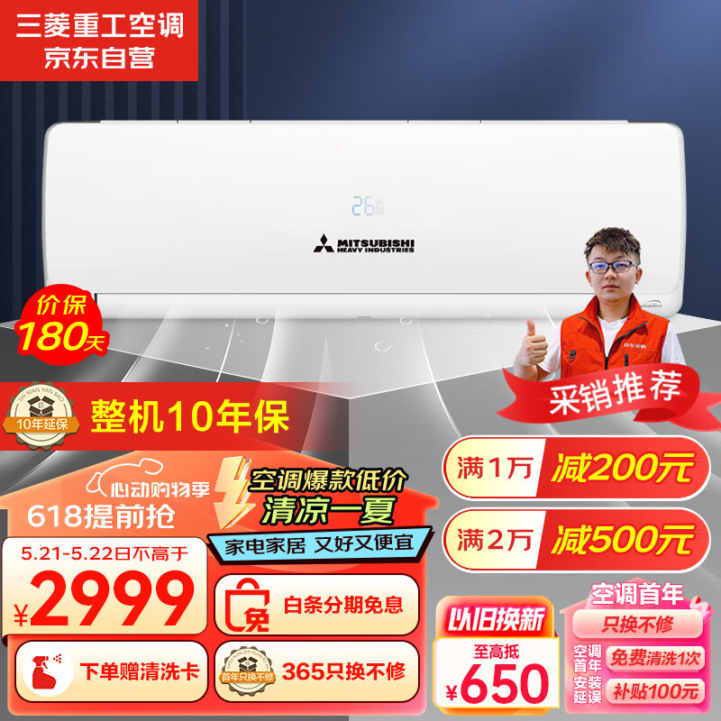 三菱重工 适用11-16㎡ 新三级能效 1匹 变频冷暖 空调挂机智能电辅热远程送风三菱空调SRKQG26以旧换新价格:2999.00元!