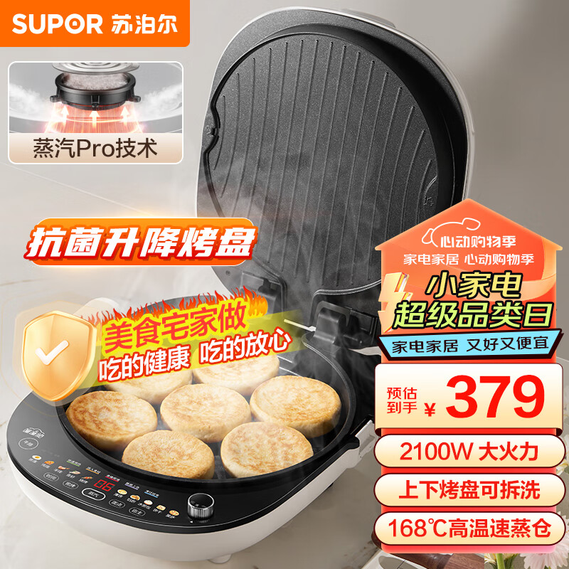 苏泊尔(SUPOR)电饼铛 上下可拆双面加热 加大加深烙饼锅煎烤机 可升降多功能 早餐机蒸汽pro电饼档 JD30RQ883价格:379.00元!