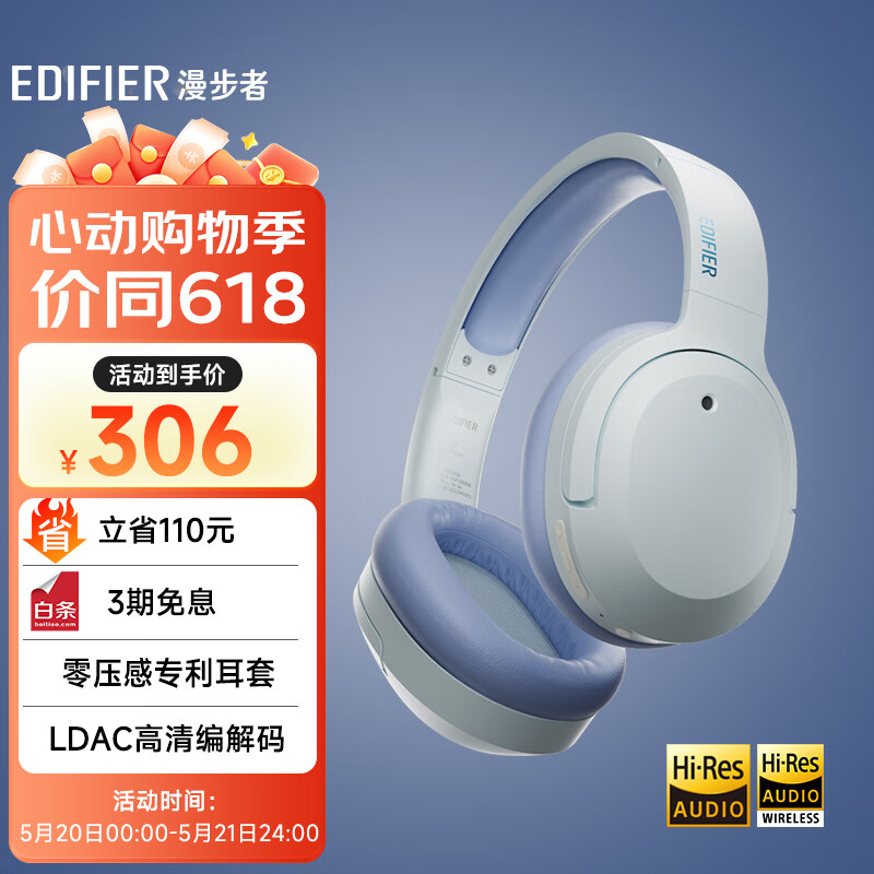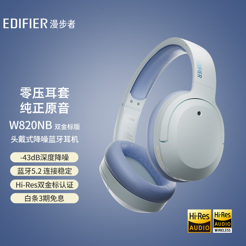 漫步者(EDIFIER)W820NB双金标版 头戴式主动降噪蓝牙耳机 蓝牙5.2 手机电脑笔记本耳机 湖光蓝价格:306.00元!