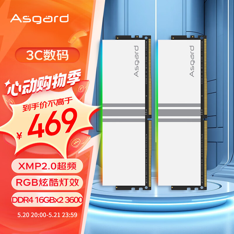 阿斯加特(Asgard)32GB(16Gx2)套装 DDR4 3600 台式机内存条 RGB灯条-女武神·瓦尔基里系列价格:469.00元!