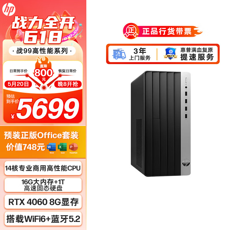 惠普(HP) 战99 设计师台式电脑主机(酷睿13代i5-13500 16G 1T RTX4060)14核高性能CPU价格:5699.00元!