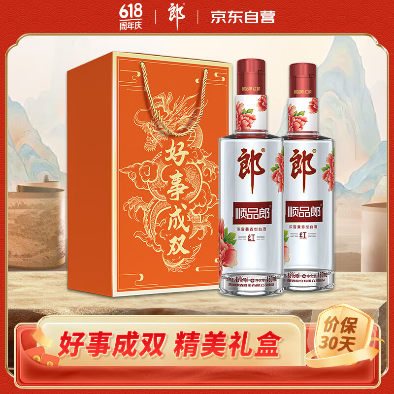 郎酒 顺品郎红顺 浓酱兼香型白酒 45度480ml*2瓶 好事成双龙年礼盒装价格:130.00元!