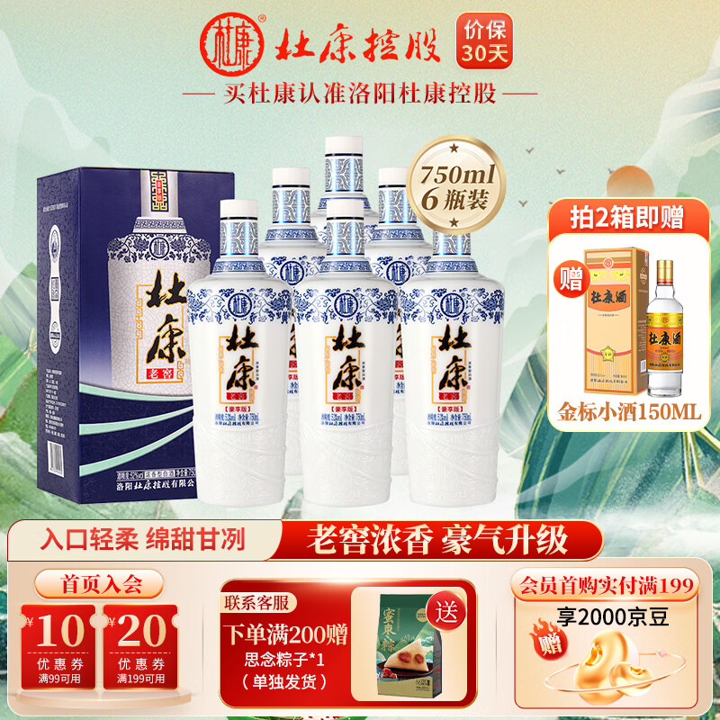 杜康老窖豪享版浓香型白酒52度750ml*6瓶整箱装 高粱酒纯粮酒送礼 52度 750mL 6瓶 整箱装价格:236.00元!