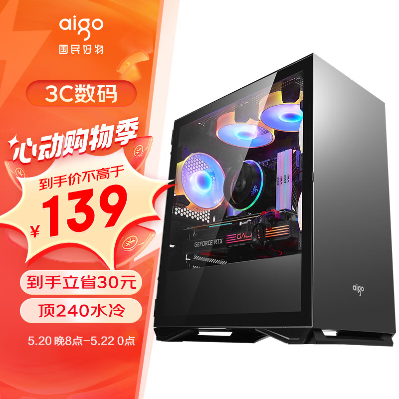 爱国者(aigo)YOGO M2钛灰色 桌面台式主机电脑小机箱(支持M-ATX主板/240水冷/侧拉式钢化玻璃/多硬盘位)价格:139.00元!