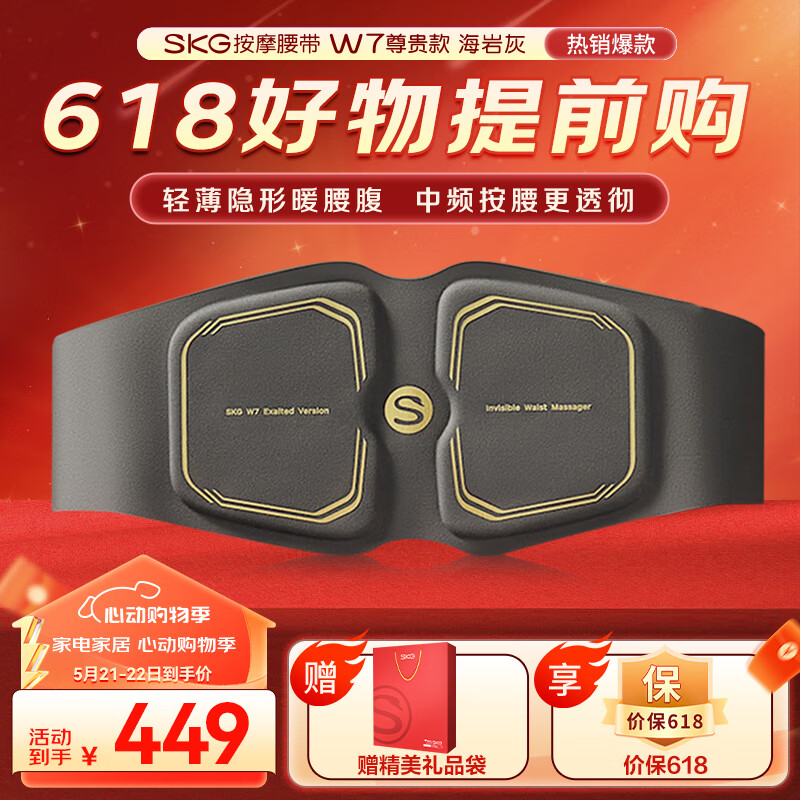 skg腰部按摩器 无线热敷腰腹部 智能按摩仪揉捏护腰带 520情人节送男女友老婆老公礼物 W7尊贵海岩灰价格:449.00元!