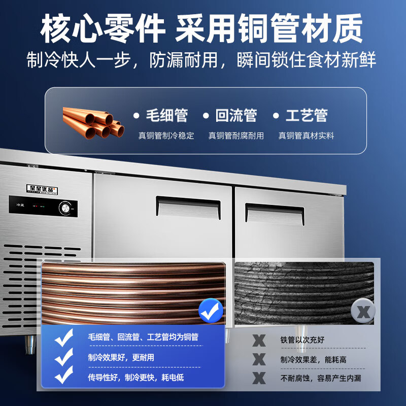 星星优品(XINGX·YOUPIN)操作台冰柜冷藏工作台商用冷冻不锈钢平冷厨房卧式冰箱 水吧台冰柜奶茶店设备 1.8*0.8*0.8 冷藏(经济升级款)价格:1799.00元!