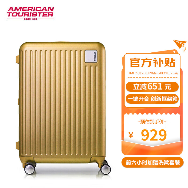 美旅箱包时尚休闲行李箱竖条纹大容量拉杆箱旅行箱QI9芥末黄24英寸价格:929.00元!