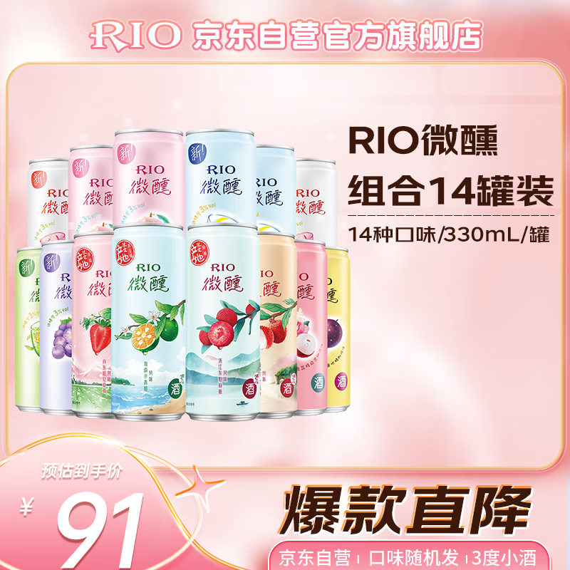 锐澳(RIO)洋酒 预调 鸡尾酒 果酒 微醺小美好 330ml*14罐 (口味随机发货)价格:91.00元!
