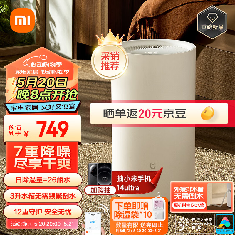 米家小米除湿机 家用抽湿机 除湿器 除湿量13L/天 7重降噪 卧室轻音 除潮空气 干衣机 智能互联价格:749.00元!