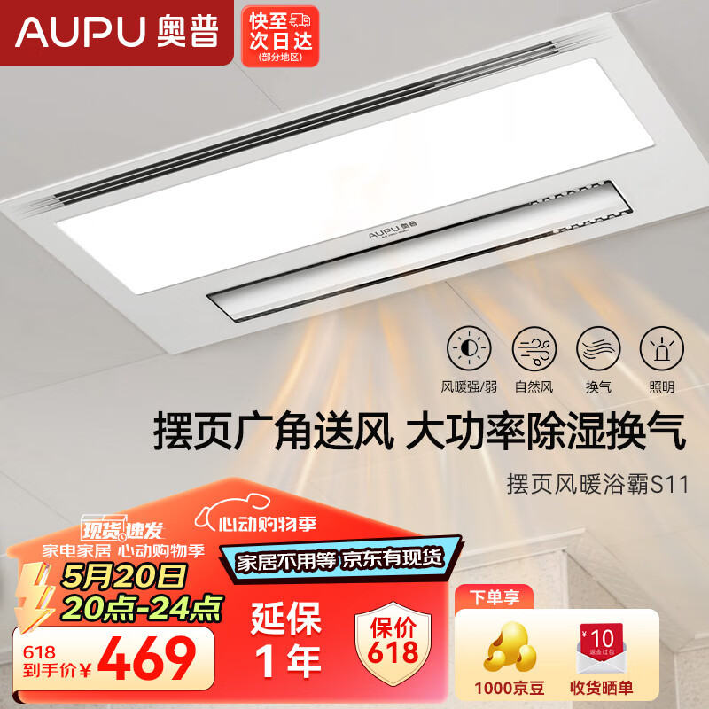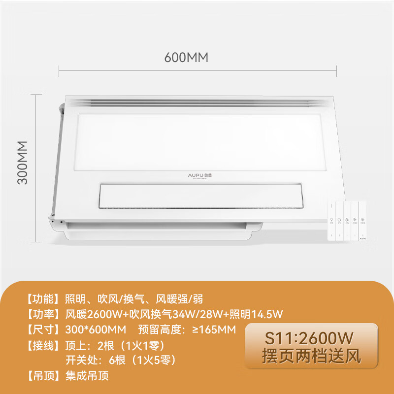 奥普浴霸摆页强弱两档暖风柔光照明集成吊顶风暖换气大功率多功能S11价格:659.00元!