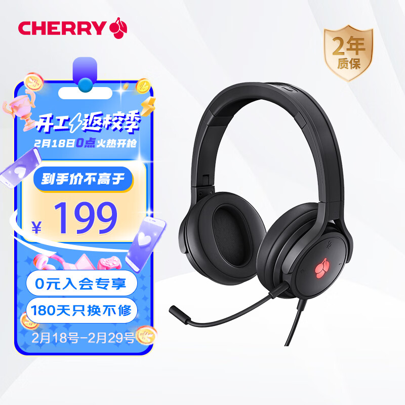 CHERRY樱桃(CHERRY)HC2.2 JA-2230-2 游戏耳机 7.1环绕音效 头戴式耳机 电竞耳机 LOGO灯效 黑色价格:199.00元!