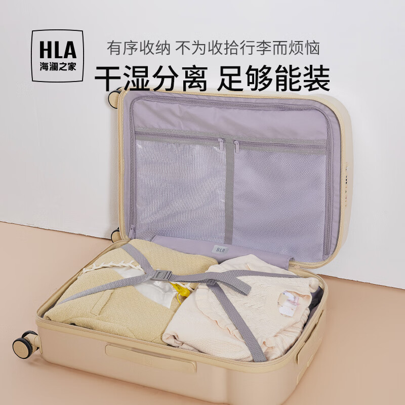 海澜之家(HLA)高颜值行李箱大容量拉杆箱女旅行箱包密码箱 吐司芝士26英寸价格:359.00元!