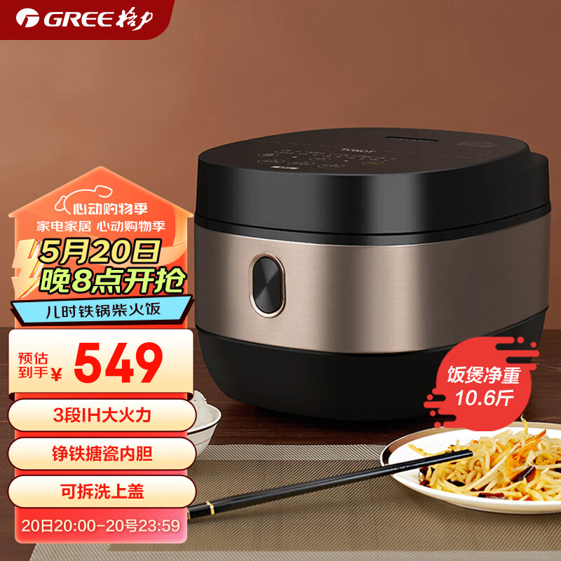大松(TOSOT)格力电饭煲家用 4-5-8人大容量5L电饭锅柴火饭 多功能智能蒸煮 3段Ih加热饭煲 GDCF-5011C价格:599.00元!