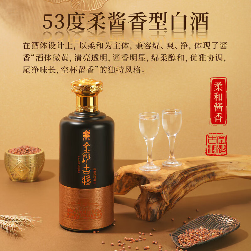 金沙古 酱香型白酒 尊享一号 53度纯粮酒整箱 500ml*6瓶 贵州老字号价格:399.00元!