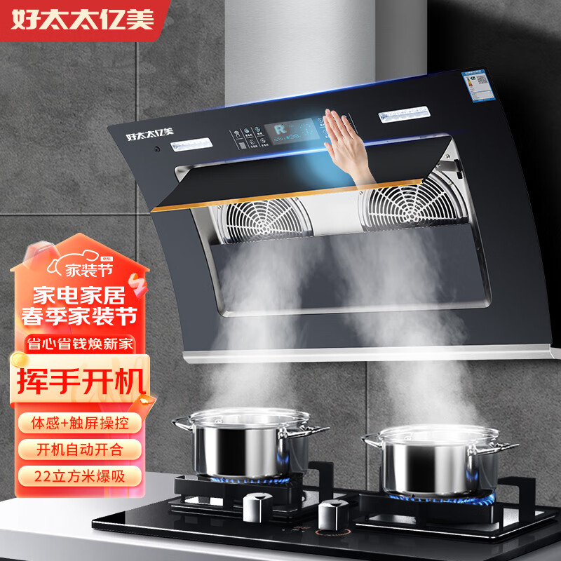 好太太亿美油烟机家用侧吸式抽油烟机双电机900宽自动开合 22立方大吸力CXW-238-837C900K价格:499.00元!