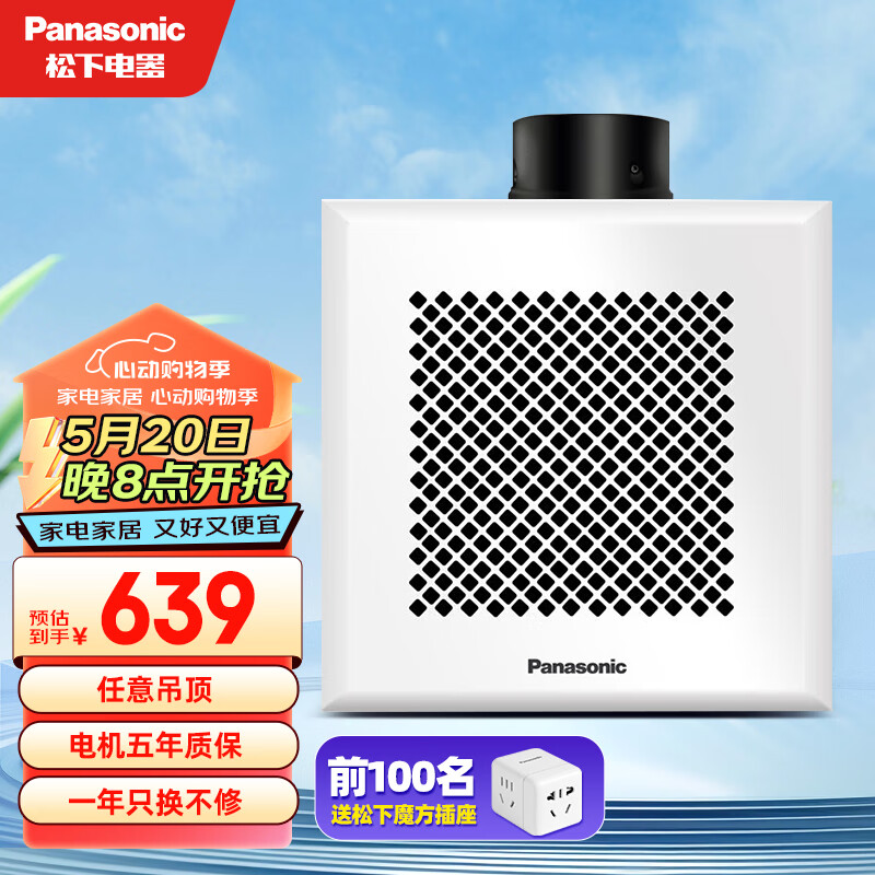 松下(Panasonic)排气扇吸顶式厨房抽风机吊顶卫生间强力排风扇通风管道换气扇 FV-RC20D2【两档可调】 168风量价格:699.00元!