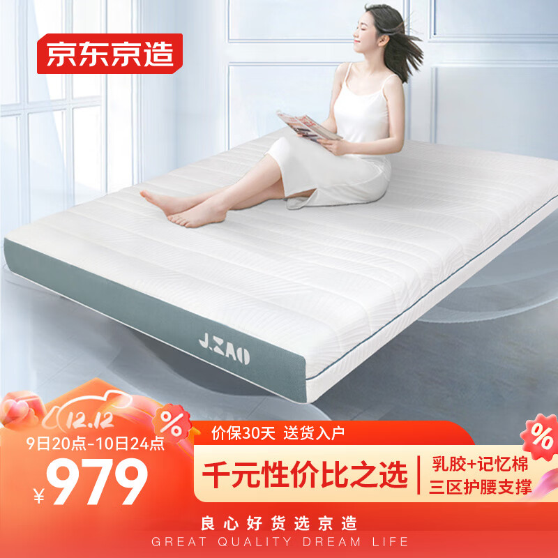 京东京造弹簧床垫1.8*2米 乳胶床垫 记忆棉+独袋弹簧 席梦思床垫 老罗推荐价格:1079.00元!