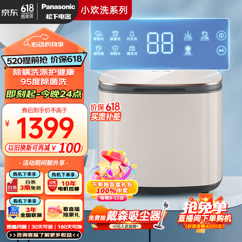 松下(Panasonic)小欢洗SE 1公斤迷你洗衣机 母婴内衣内裤 高温煮洗除菌螨 内衣洗系列XQB10-A10C价格:1499.00元!