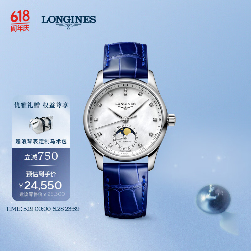 浪琴(LONGINES)瑞士手表 名匠系列 月相机械皮带女表 L24094870价格:24550.00元!