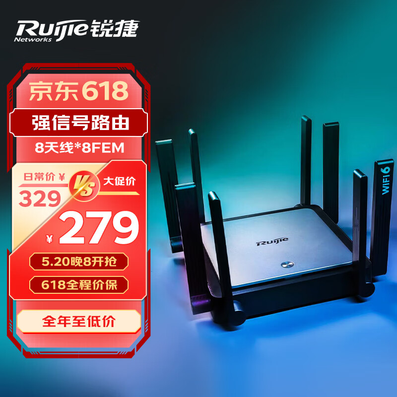 锐捷(Ruijie)无线路由器 千兆 家用WiFi6路由器 穿墙王3200M Mesh组网 星耀X32PRO价格:279.00元!
