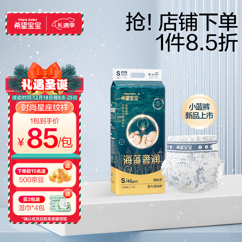 希望宝宝海藻奢润纸尿裤裤S46片泡泡腰围超薄透气婴儿尿不湿价格:100.00元!