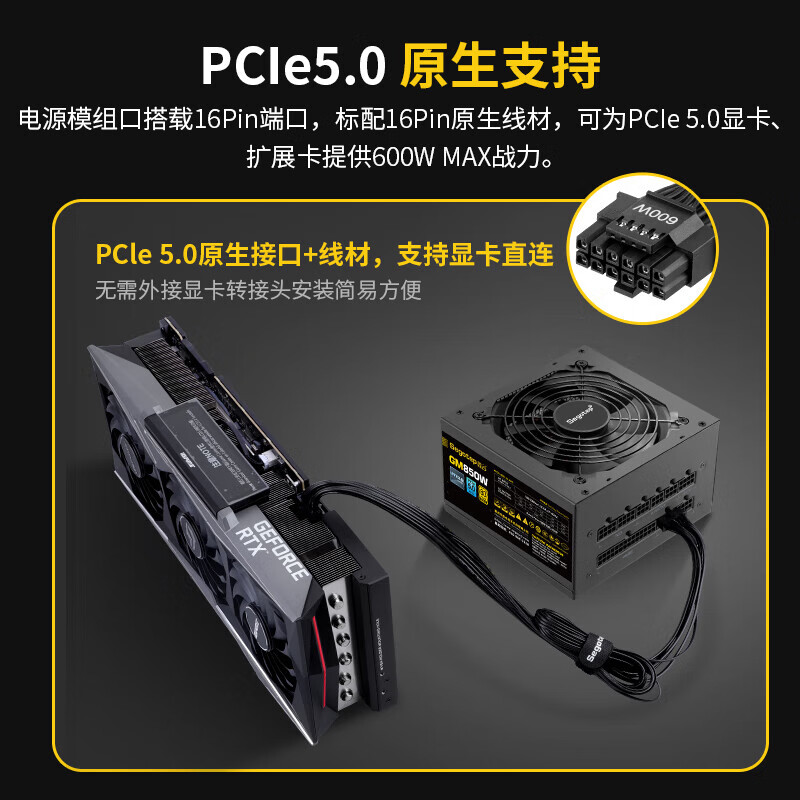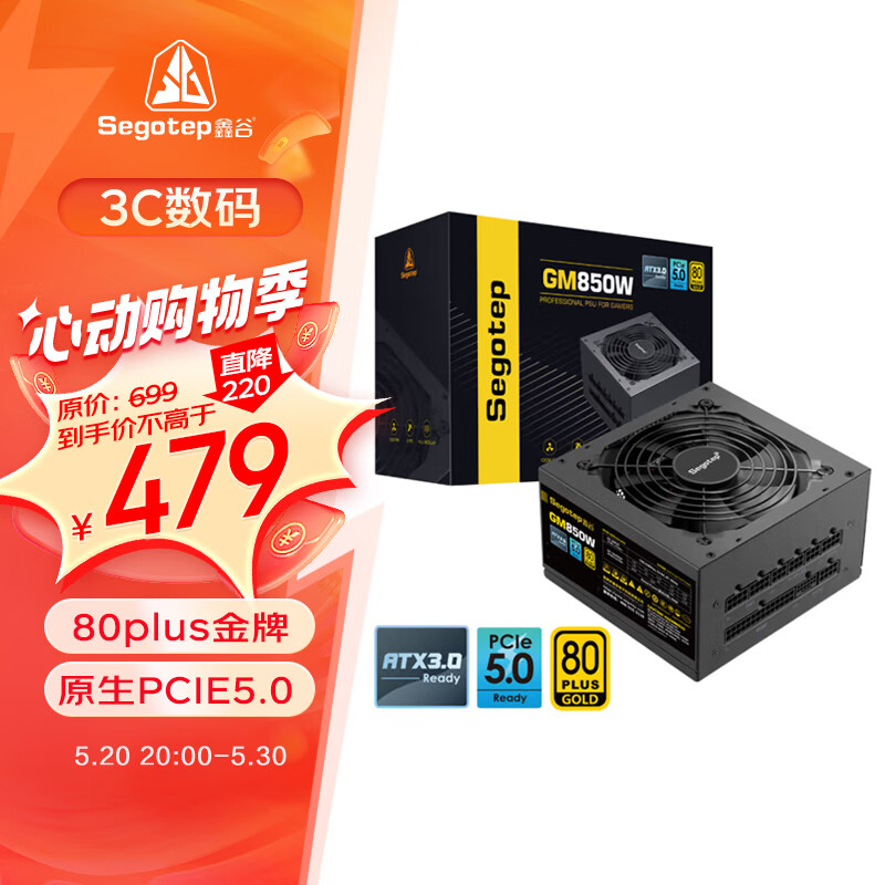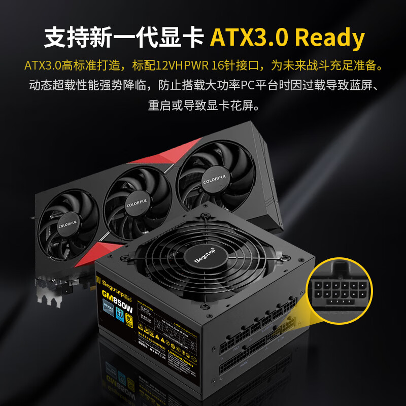鑫谷(segotep)GM850W ATX3.0电源(原生PCIE5.0/12VHPWR/80plus金牌/全模组设计/台式电脑主机箱电源)价格:479.00元!