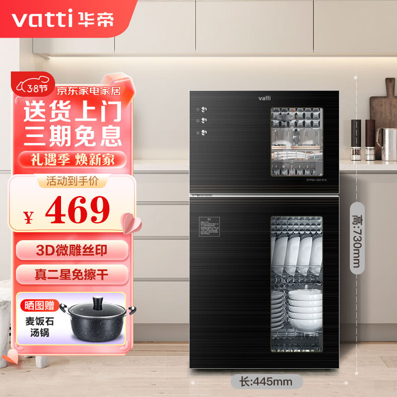 华帝(VATTI)家用消毒柜立式小型紫外线高温烘干餐具奶瓶两用消毒碗柜 ZTP80-GB101A价格:539.00元!