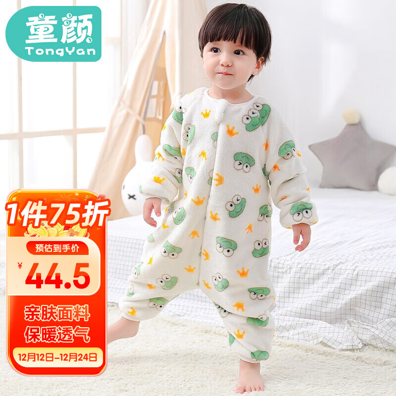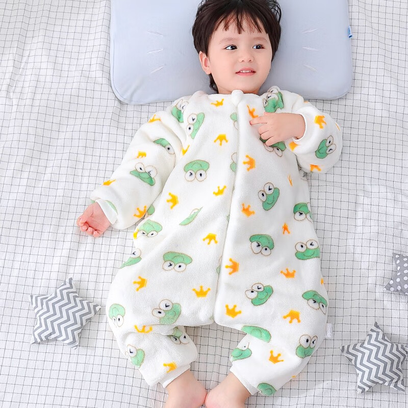 童颜婴儿分腿睡袋中大儿童防踢被子宝宝秋冬季连体睡衣白色青蛙 100cm价格:59.00元!