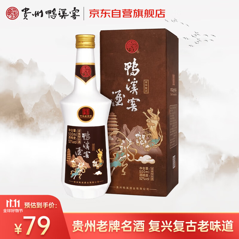 鸭溪贵州鸭溪窖 荣华复兴 浓香型白酒 52度 500ml 单瓶装价格:85.00元!
