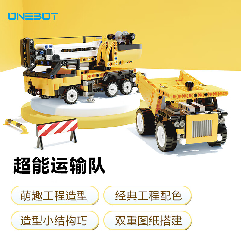 ONEBOT国潮积木工程车8岁+儿童节玩具男生礼物超能运输队 小矿卡+小吊车价格:133.10元!
